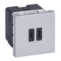 USB-Ladesteckdose MOSAIC 2×Typ-C 3A 30W 2 Module alu