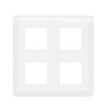 Plaque de recouvrement encastré 2x2+2 modules Mosaic Dimensions: 166x166x9mm Matière isolante Fixation rapide sans vis, les plaques se clipsent par crans sur le support Pour support réf. 0802 64 N'est pas appropriée pour le montage dans boite d'encastrement Suisse