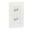 Appareil complet encastré Arteor Dimensions plaque de recouvrement: 92x157x7.7mm Dimensions support: 135x85x1.2mm Enjoliveur 45x45mm Profondeur: 26.7mm Montage en horizontal ou vertical Avec bornes automatiques pour fils rigides ou souples < 2,5 mm² Prises L + N + PE, 10A, 250V